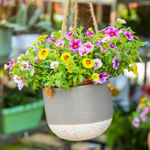 - Vul de ruimte: Combineer hangende en staande planten voor een speels en vol effect in potten en borders.