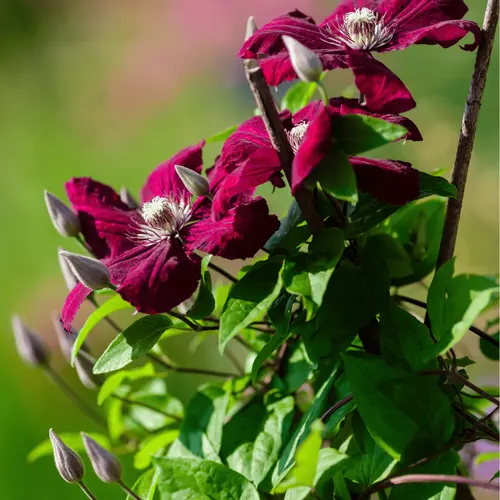 - Clematis: Met zijn overvloed aan kleurrijke bloemen is de Clematis een geliefde keuze onder tuiniers. Van diep paars tot fel roze, er is een Clematis-variëteit voor elke tuin. Ze gedijen goed in zowel zon als halfschaduw en vereisen regelmatig water geven. Snoei in het voorjaar om de groei te bevorderen en de plant in vorm te houden.