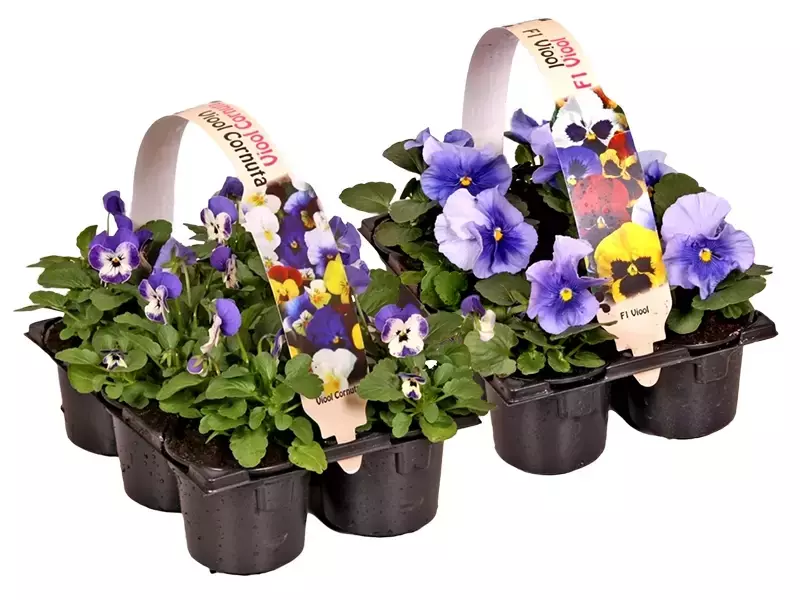 Er bestaan ruim 400 verschillende soorten violen in allerlei kleurschakeringen. De grootbloemige F1-Hybriden (Viola F1) zijn door de manier waarop ze zijn gekweekt sterk en gelijkvormig. De bloemen vallen extra op, bedekken bijna het onderliggende groen en zien er mooi en evenwichtig uit. De kleinbloemige Viola cornuta is wintergroen en een natuurlijk en verfijnd ogend viooltje. Als bonus is dit plantje ook nog meerjarig. Met beide soorten violen heb je alles in huis om extra uitbundig de lente te starten.
