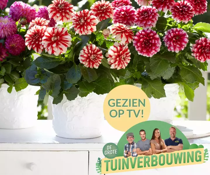 In het SBS6-programma De Grote Tuinverbouwing geven Ivo en het team elke week een tuin in nood een fikse make-over. Ook voorzien ze de kijker van inspiratie en tips om huis en tuin naar een groener level te tillen. Wist u dat alle planten die in het programma worden gebruikt ook in ons tuincentrum in Bergambacht te koop zijn? U vindt ze na uitzending in het speciale vak op de plantenafdeling.
