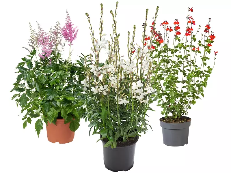 De roze, rode of witte pluimen van de Astilbe geven kleur aan de wat schaduwrijke plekken. De  laagste soorten zijn 40 cm hoog, de hoogste halen makkelijke een meter. De bloei is tussen juni en augustus.
