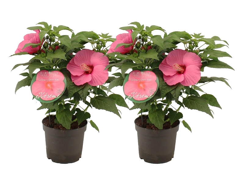 Oorspronkelijk komt de Hibiscus overal in de wereld in zowel tropische als subtropische streken voor. Vooral bekend zijn de tuinhibiscus (Hibiscus syriacus) of altheastruik en natuurlijk de Chinese roos (Hibiscus rosa-sinensis). De Moscheutos 'Extreme' is met 1 tot 1,5 meter een vrij laagbloeiende hibiscussoort die enorme schotelvormige bloemen vormt met een diameter van wel 20 cm. Deze heester komt pas vanaf juli tot volle bloei en toont je tot de eerste nachtvorst in de herfst haar geweldig grote kleurrijke bloemen. Ze is vorstbestendig, verliest in de winter wel haar diepgroene bladeren, maar die komen in het voorjaar gewoon weer terug.