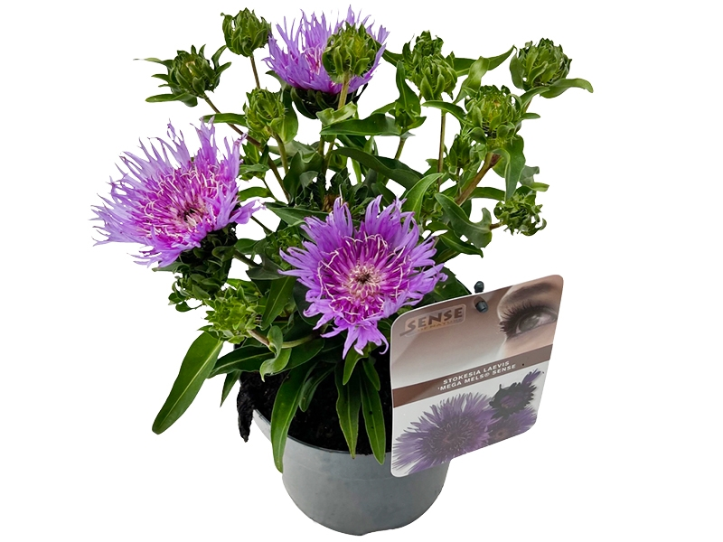 Lange, slanke bladeren en grote, platte lilablauwe bloemen die wagenwijd open staan alsof ze ieder zonnestraaltje willen opvangen. De kleurige bloemen van de Stokesia laevis doen aan klassieke korenbloemen denken, maar dat zijn ze niet. Deze vaste plant is lid van de grote composietenfamilie en komt oorspronkelijk uit het zuidoostelijke deel van de Verenigde Staten. De planthoogte komt tot zo’n 40 cm en tijdens de vrij late bloeiperiode van augustus tot oktober komen er lekker veel bijen, vlinders en andere nuttige insecten op de uitnodigende bloemen af.