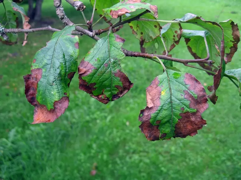 - Zomer en herfst – De bladeren zullen bruin of zwart worden en uitdrogen. De bladeren zien er na een regenbui vaak zilverachtig uit. Dit komt door bacterieslijm dat zich vermengt met regenwater.